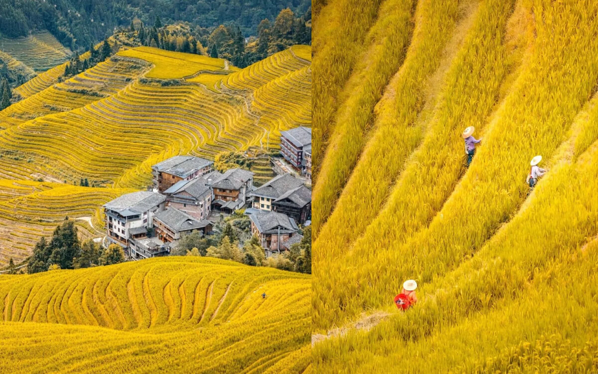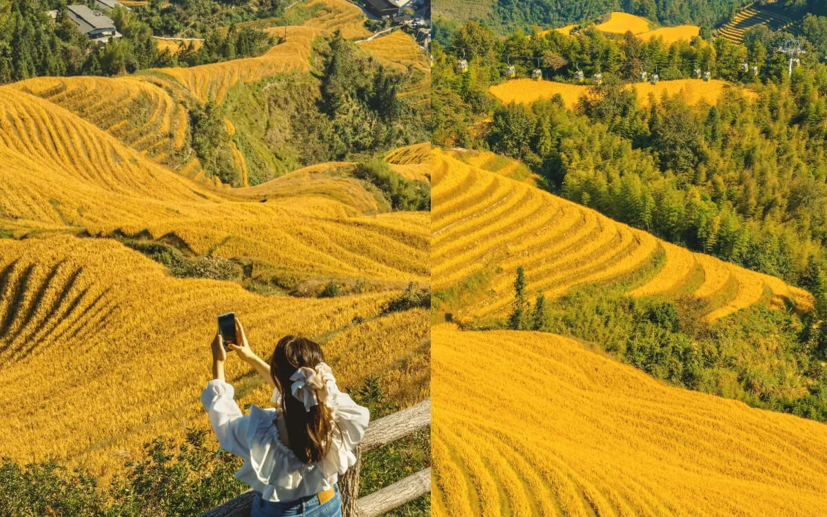 第2️⃣天:桂林-龍脊梯田—黃洛瑤寨—金坑大寨/平安寨—金佛頂觀景台—體驗民族服裝旅拍、稻田摸魚、DIY竹筒飯—住桂林或住龍脊都可以