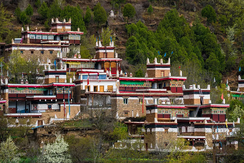 🌅第四天:九寨—藏寨—成都:坐西朝東,背靠水西,腳抵岷江,面向九鼎聖山,頭枕藍天白雲,莊嚴雄偉,氣勢恢宏