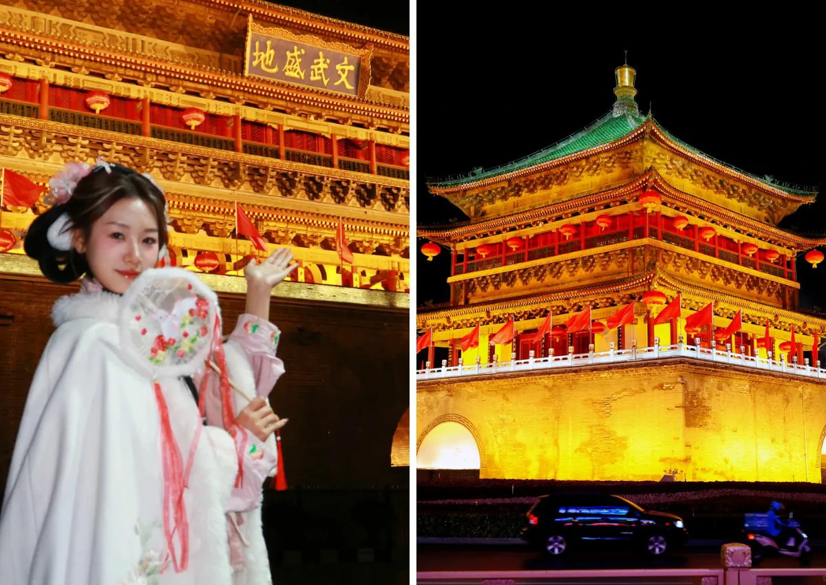 🚗:第一天 :出發--西安-(24小時免費接送機/站 時間到的早的 可以自行前往明城牆——永興坊 吃特色小吃——不夜城觀看演出)