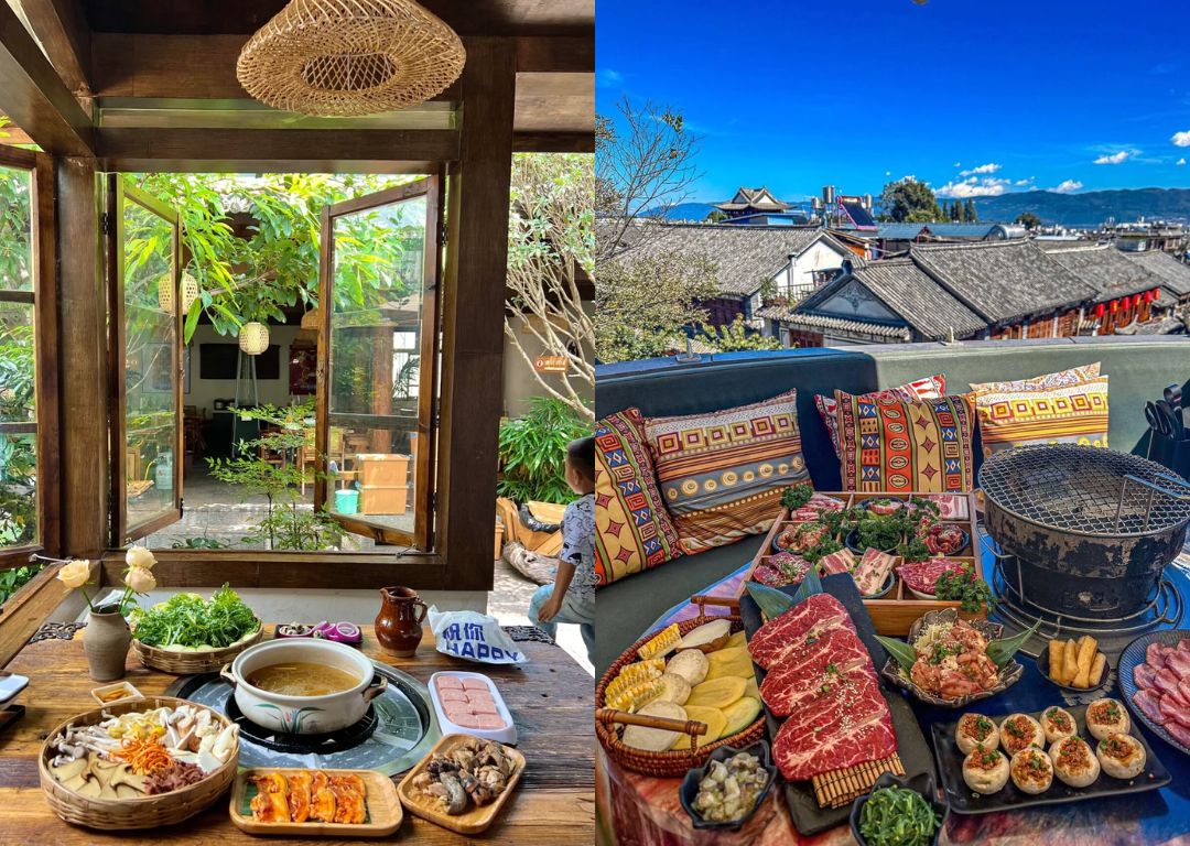 美食推薦:菌湯火鍋+大理土八碗+麗江高原土鍋雞+臘排骨+ 秘製牛肉+納西烤肉 +過橋米線+烤乳扇+鮮花餅+自釀酸奶