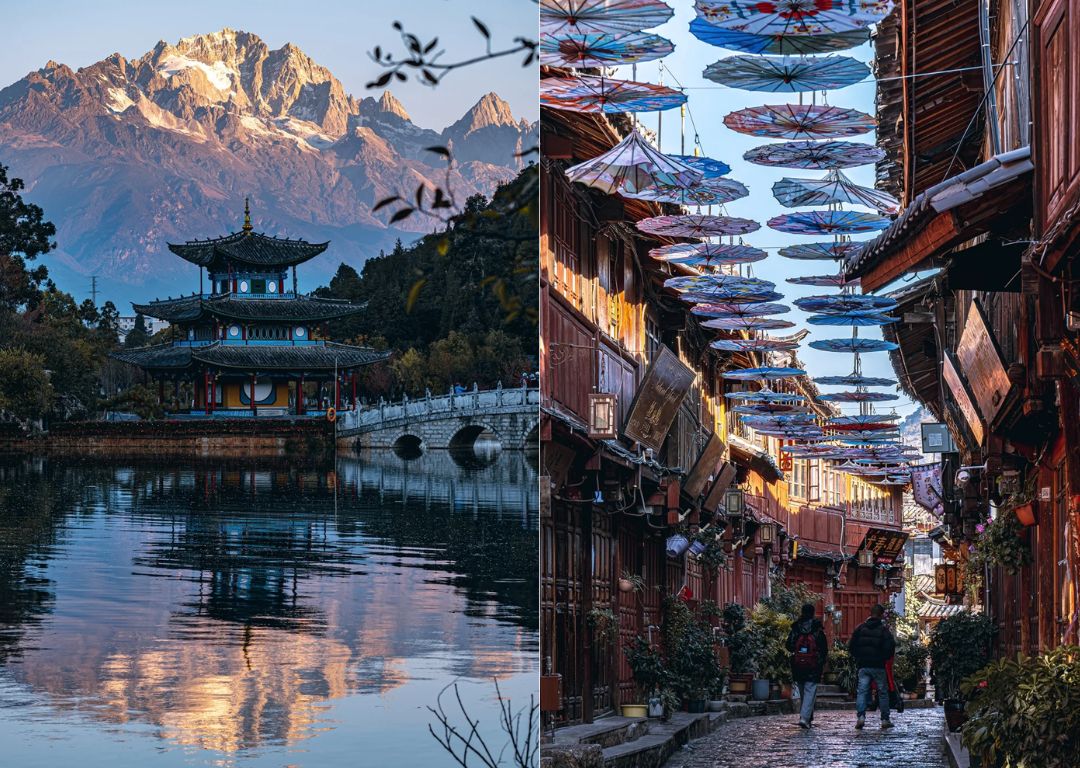 🌅麗江古城:世界文化遺產,有著完美的古老建築和迷人的小巷,非常適合漫步和探索。